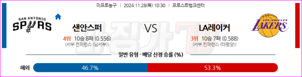11월 28일 NBA 샌안토니오 스퍼스 LA레이커스 미국프로농구분석 스포츠분석