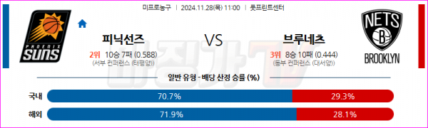 11월 28일 NBA 피닉스 선즈 브루클린 네츠 미국프로농구분석 스포츠분석