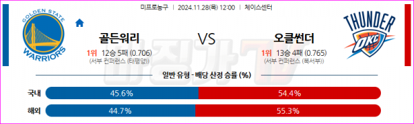 11월 28일 NBA 골든스테이트 워리어스 오클라호마시티 썬더 미국프로농구분석 스포츠분석