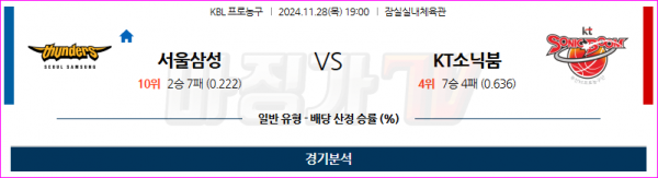 11월 28일 KBL 서울삼성 수원KT 국내외농구분석 스포츠분석