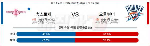 12월 2일 NBA 휴스턴 오클라호마 미국프로농구분석 스포츠분석