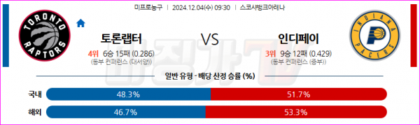 12월 4일 NBA 토론토 랩터스 인디애나 페이서스 미국프로농구분석 스포츠분석