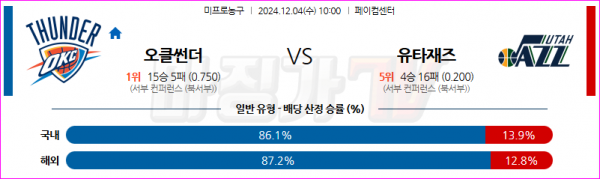 12월 4일 NBA 오클라호마시티 썬더 유타 재즈 미국프로농구분석 스포츠분석