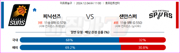 12월 4일 NBA 피닉스 선즈 샌안토니오 스퍼스 미국프로농구분석 스포츠분석