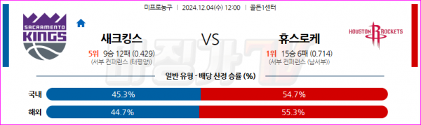 12월 4일 NBA 새크라멘토 킹스 휴스턴 로켓츠 미국프로농구분석 스포츠분석