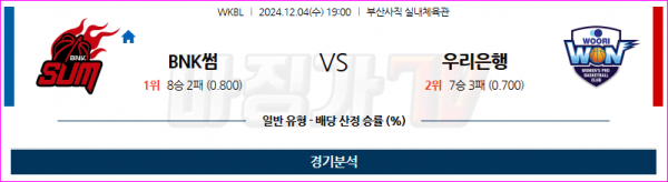 12월 4일 WKBL BNK썸 우리은행 국내외농구분석 스포츠분석