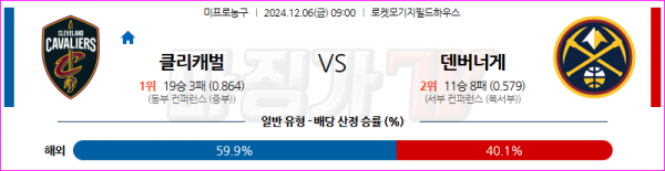 12월 6일 NBA 클리블랜드 캐벌리어스 덴버 너겟츠 미국프로농구분석 스포츠분석