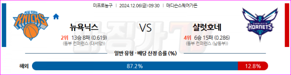 12월 6일 NBA 뉴욕 닉스 샬럿 호네츠 미국프로농구분석 스포츠분석