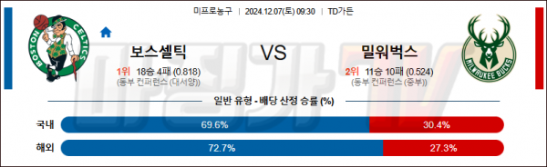 12월 7일 NBA 보스턴 밀워키 미국프로농구분석 스포츠분석