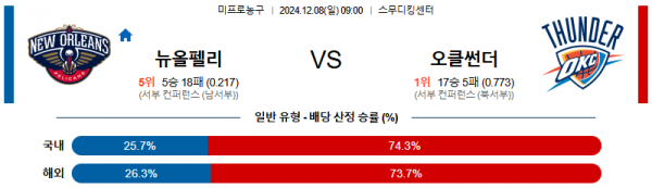 2024 12월 08일 뉴올리언스 오클라호마시티 NBA 분석