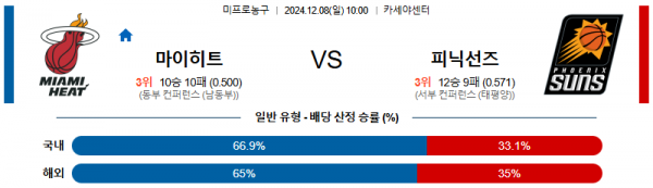 2024 12월 08일 마이애미 피닉스선즈 NBA 분석