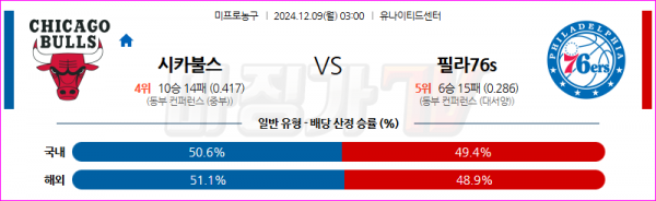12월 9일 NBA 시카고 불스 필라델피아 76ERS 미국프로농구분석 스포츠분석