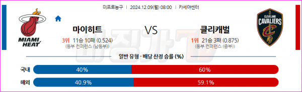 12월 9일 NBA 마이애미 히트 클리블랜드 캐벌리어스 미국프로농구분석 스포츠분석