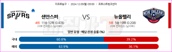 12월 9일 NBA 샌안토니오 스퍼스 뉴올리언스 펠린컨즈 미국프로농구분석 스포츠분석