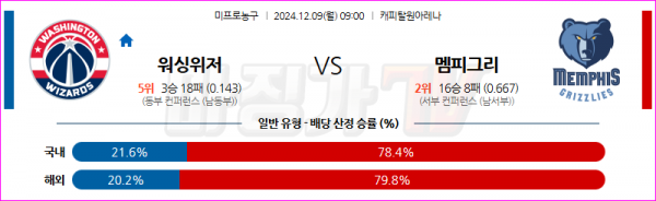 12월 9일 NBA 워싱턴 위자드 멤피스 그리즐리즈 미국프로농구분석 스포츠분석