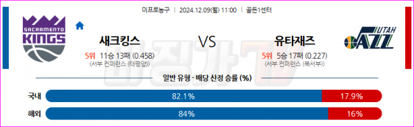 12월 9일 NBA 새크라멘토 킹스 유타 재즈 미국프로농구분석 스포츠분석