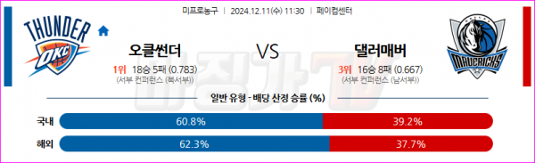 12월 11일 NBA 오클라호마시티 썬더 댈러스 매버릭스 미국프로농구분석 스포츠분석
