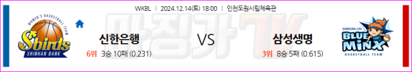 12월 14일 WKBL 신한은행 삼성생명 국내외농구분석 스포츠분석