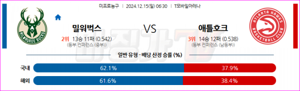 12월 15일 NBA 밀워키 벅스 애틀랜타 호크스 미국프로농구분석 스포츠분석