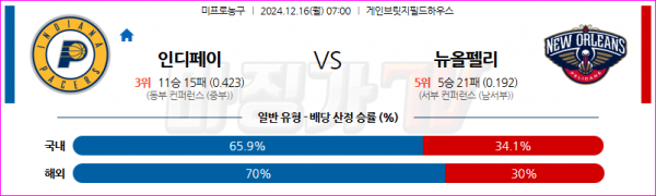 12월 16일 NBA 인디애나 페이서스 뉴올리언스 펠린컨즈 미국프로농구분석 스포츠분석