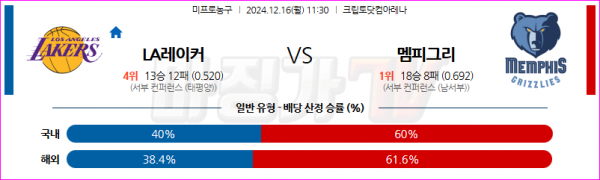 12월 16일 NBA LA레이커스 멤피스 그리즐리즈 미국프로농구분석 스포츠분석