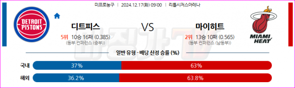 12월 17일 NBA 디트로이트 피스톤스 마이애미 히트 미국프로농구분석 스포츠분석