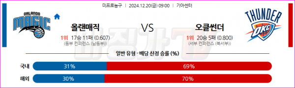 12월 20일 NBA 올랜도 매직 오클라호마시티 썬더 미국프로농구분석 스포츠분석