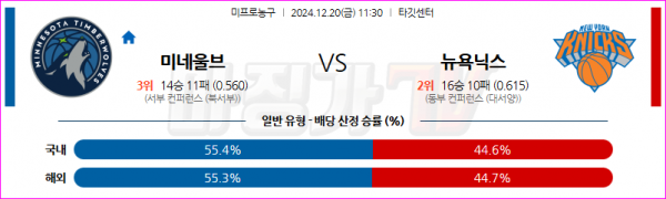 12월 20일 NBA 미네소타 울브스 뉴욕 닉스 미국프로농구분석 스포츠분석