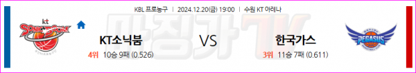 12월 20일 KBL 수원 KT 대구 한국가스공사 국내외농구분석 스포츠분석