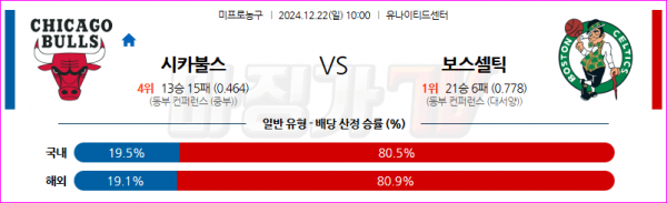 12월 22일 NBA 시카고 불스 보스턴 셀틱스 미국프로농구분석 스포츠분석