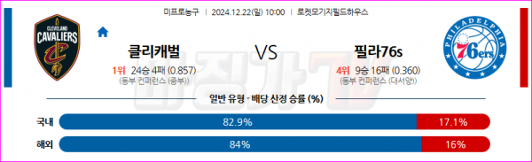 12월 22일 NBA 클리블랜드 캐벌리어스 필라델피아 76ERS 미국프로농구분석 스포츠분석