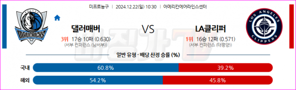 12월 22일 NBA 댈러스 매버릭스 LA 클리퍼스 미국프로농구분석 스포츠분석