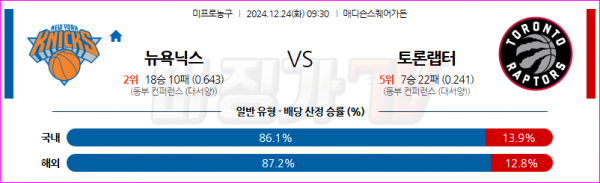 12월 24일 NBA 뉴욕 닉스 토론토 랩터스 미국프로농구분석 스포츠분석