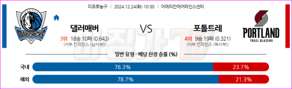 12월 24일 NBA 댈러스 매버릭스 포틀랜드 트레일블레이저 미국프로농구분석 스포츠분석