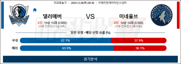 12월 26일 NBA 댈러스 미네소타 미국프로농구분석 스포츠분석