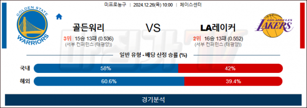 12월 26일 NBA 골든스테이트 LA레이커스 미국프로농구분석 스포츠분석