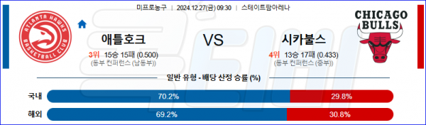 2024 12월 27일 애틀란타 호크스 시카고 불스 NBA 분석