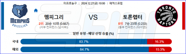 2024 12월 27일 멤피스 토론토 NBA 분석