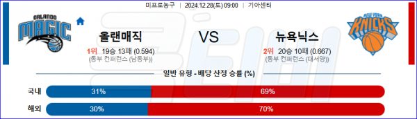2024 12월 28일 올랜도 뉴욕닉스 NBA 분석