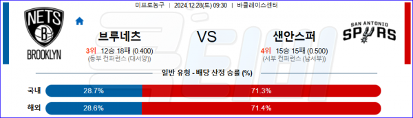 2024 12월 28일 브루클린 샌안토니오 NBA 분석