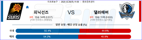 2024 12월 28일 피닉스선즈 댈러스 매버릭스 NBA 분석