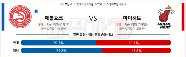 12월 29일 NBA 애틀랜타 호크스 마이애미 히트 미국프로농구분석 스포츠분석