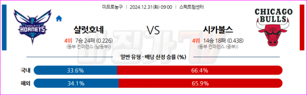 12월 31일 NBA 샬럿 호네츠 시카고 불스 미국프로농구분석 스포츠분석