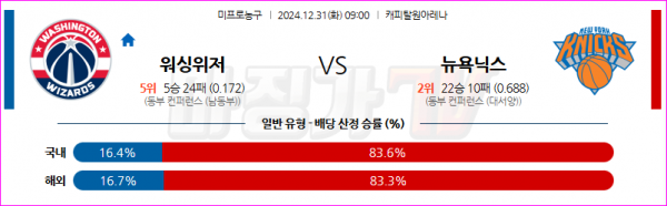 12월 31일 NBA 워싱턴 위자드 뉴욕 닉스 미국프로농구분석 스포츠분석