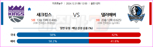 12월 31일 NBA 새크라멘토 킹스 댈러스 매버릭스 미국프로농구분석 스포츠분석