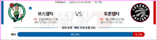 1월 1일 NBA 보스턴 셀틱스 토론토 랩터스 미국프로농구분석 스포츠분석