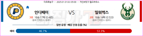 1월 1일 NBA 인디애나 페이서스 밀워키 벅스 미국프로농구분석 스포츠분석