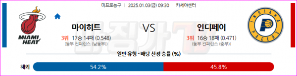 1월 3일 NBA 마이애미 히트 인디애나 페이서스 미국프로농구분석 스포츠분석