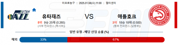 2025 01월 08일 유타 재즈 애틀란타 호크스 NBA 분석