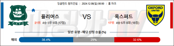 12월 8일 분데스리가 플리머스 옥스퍼드 해외축구분석 스포츠분석